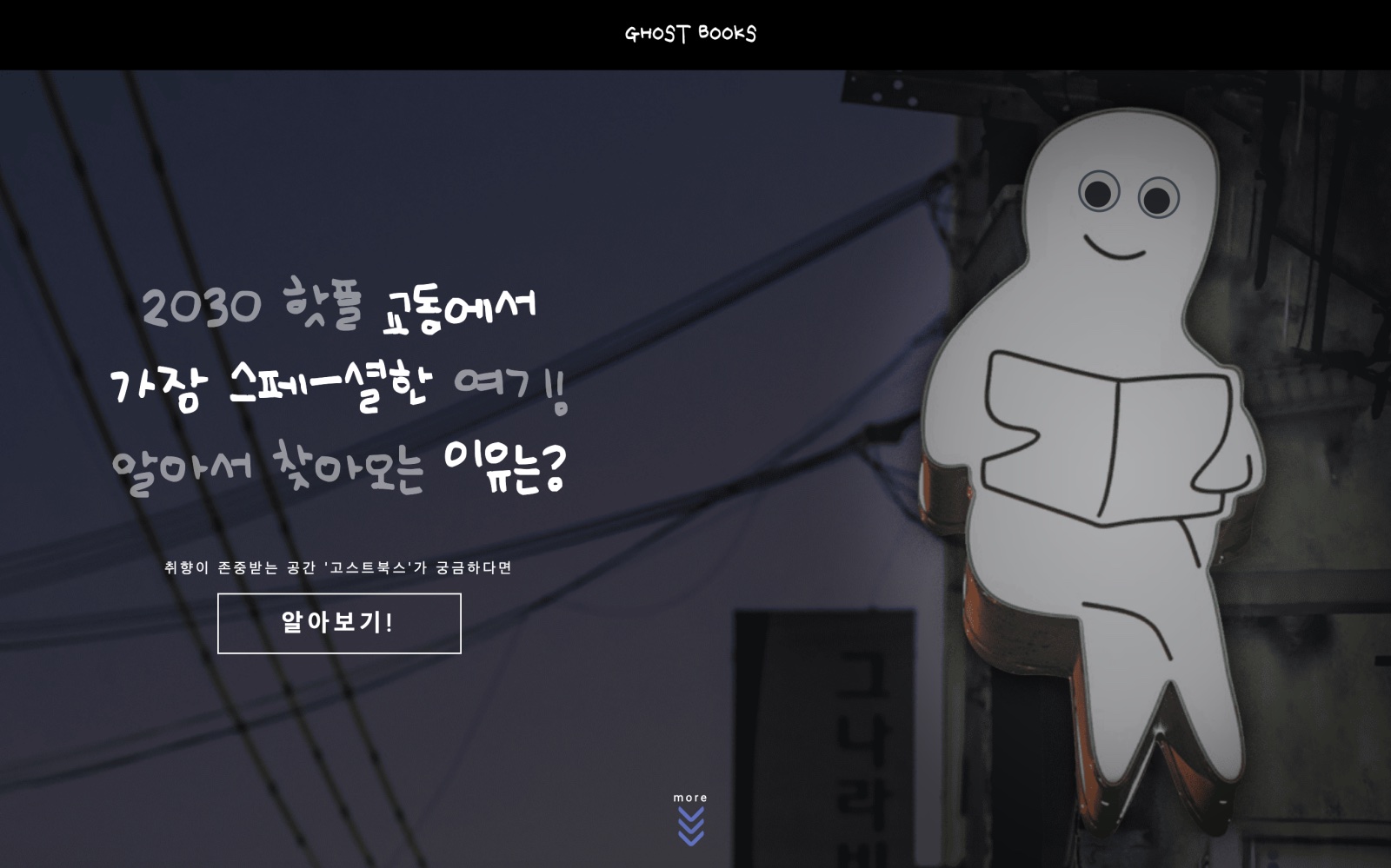 독립서점 고스트북스를 대상으로하여 제작한 카카오톡 알림톡을 이용한 마케팅 목적의 랜딩 페이지 제작.
